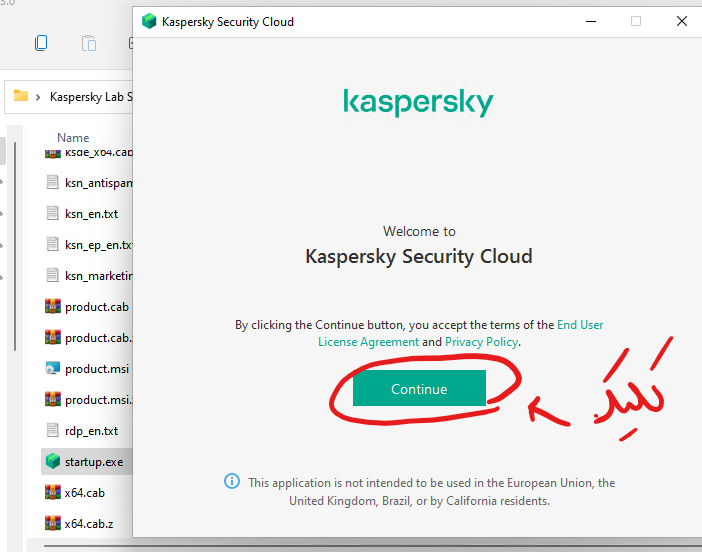 سپس در پوشه Kaspersky_Free روی فایل startup.exe کلیک نمایید و مراحل زیر را ادامه دهید